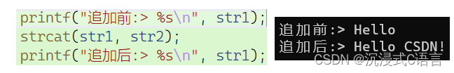strcat是一个追加字符串的函数,将源字符串追加到目标字符串的后面: