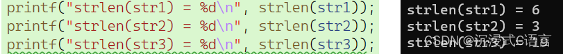 1.字符串已经 '\0' 作为结束标志,strlen函数返回的是在字符串中 '\0' 前面出现的字符个数(不包含 '\0' )。