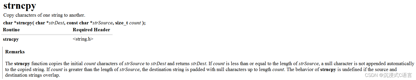 2.会将源字符串中的 '\0' 拷贝到目标空间。
