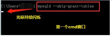 第一个窗口: mysqld --skip-grant-tables直接回车(第一个窗口 不要关!!!)