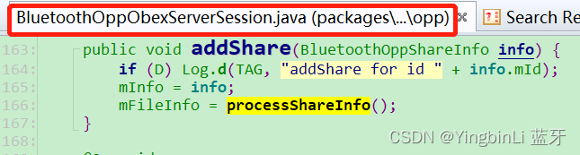-->倒推到BluetoothOppObexServerSession中方法addShare调用processShareInfo;