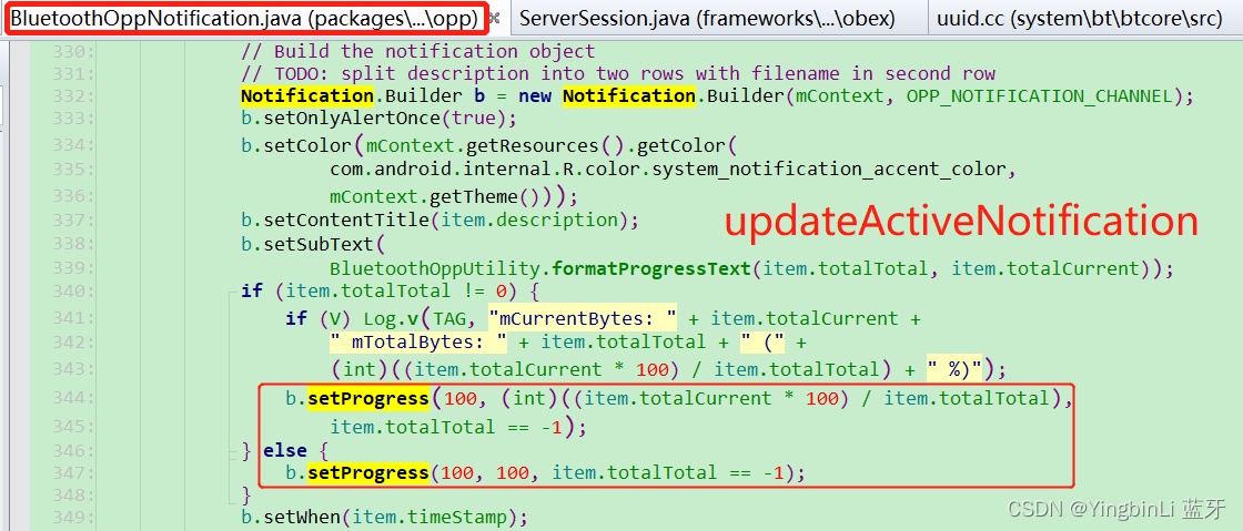 延伸问题点:接收进度条与BluetoothOppObexServerSession的方法onPut关系;