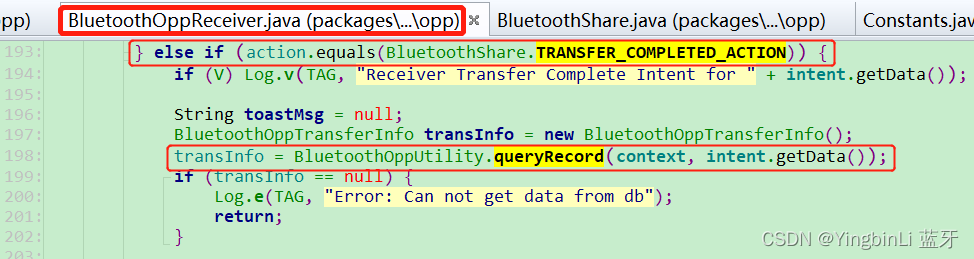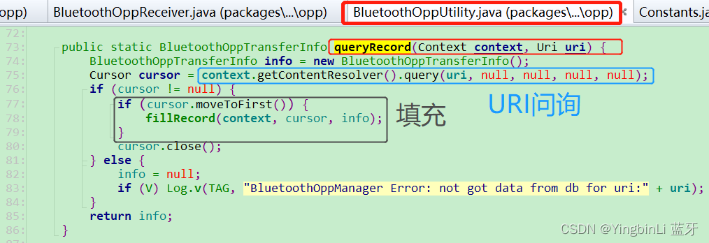 其通过“BluetoothOppUtility.queryRecord”的静态方法获取到