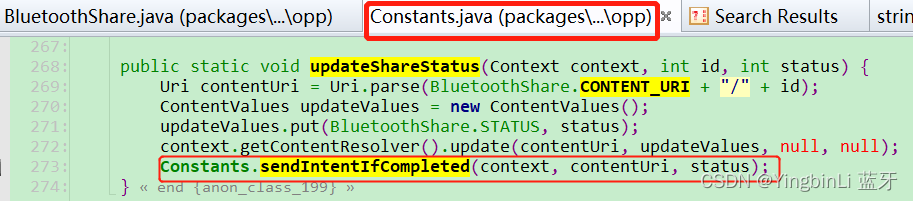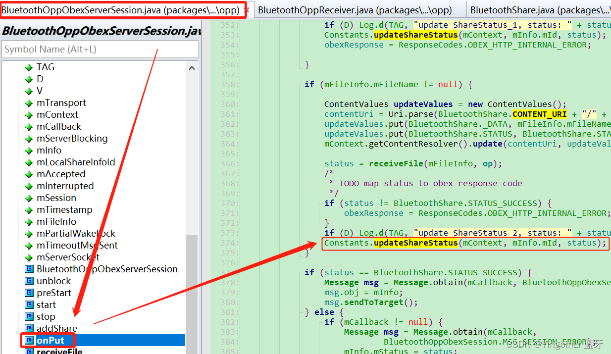 -->类BluetoothOppObexServerSession中方法onPut中(第二位置)执行updateShareStatus;