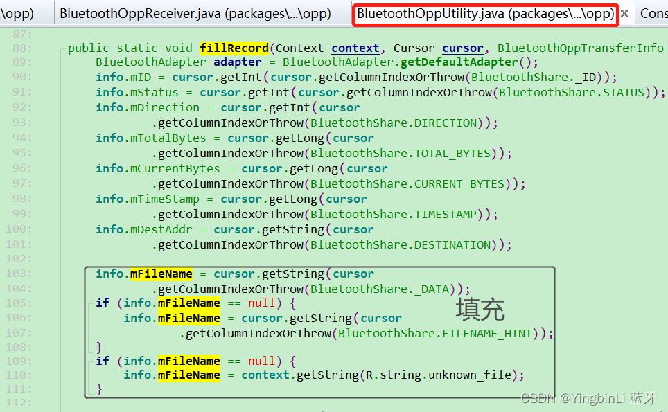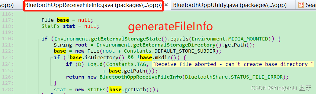 -->通过“Generated received filename”定位到类BluetoothOppReceiveFileInfo中方法