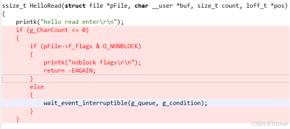 if (flags & O_NONBLOCK) {// 非阻塞模式}
