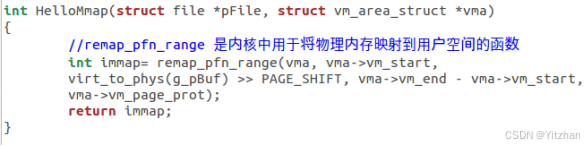 remap_pfn_range 是内核中用于将物理内存映射到用户空间的函数。它的函数原型如下: