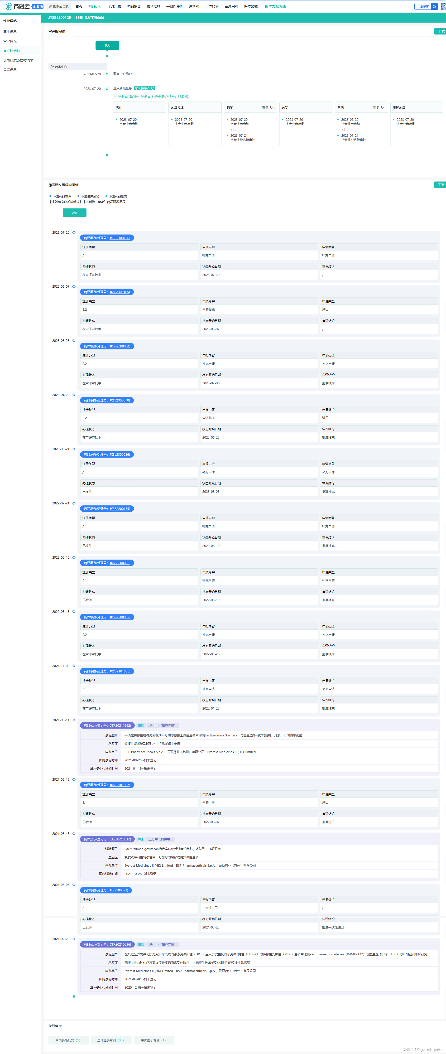 通过该数据库除了可以看到目标药品的基本信息、在国内的审评概况以及相关关联信息,还能看到目标药品在国内各阶段的审评&研发时间轴(药品各受理号时间)