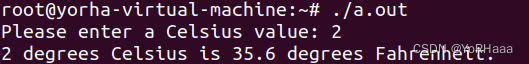 5.编写一个程序,其中的main()调用一个用户定义的函数(以摄氏温度值为参数,并返回相应的华氏温度值)。该程序按下面的格式要求用户输入摄氏温度值,并显示结果: