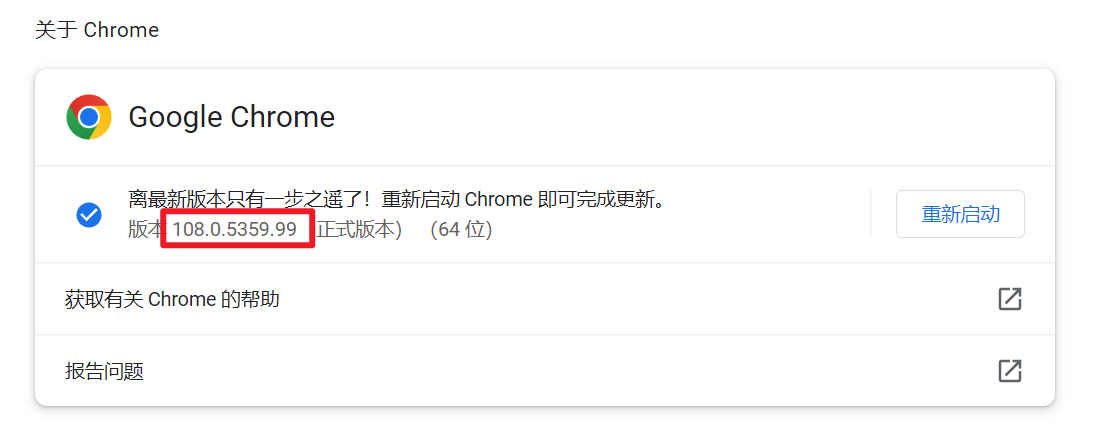 进入chrome浏览器设置,左侧菜单最后一栏,找到关于chrome,点开获取浏览器版本号,进入