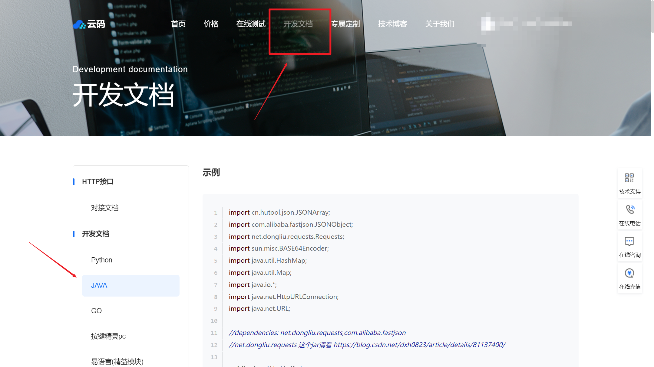 当然,云码平台还提供了开发文档,里面有滑块验证,九宫格的等等,我们以数字验证码为例,有兴趣的可以研究其他。