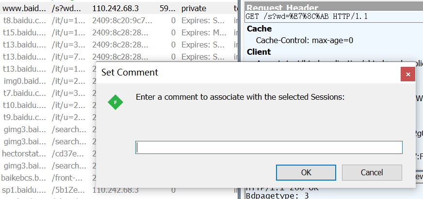 (2)气泡按钮,给session list中的会话添加备注。选中一条回话,再点击该气泡按钮可直接添加备注内容。添加成功后将会在Comments栏下查看到该备注