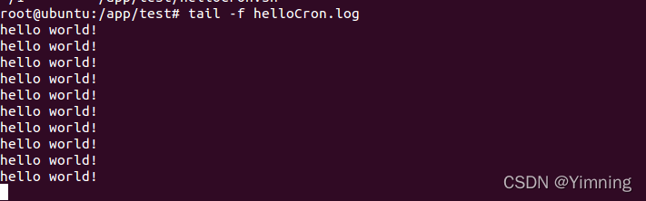 echo hello world! >> /app/test/helloCron.log # 创建一个.log文件用来作为脚本的输出文件