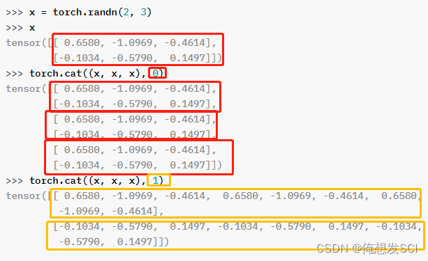 torch.cat 连接 函数将两个张量(tensor)按指定维度拼接在一起