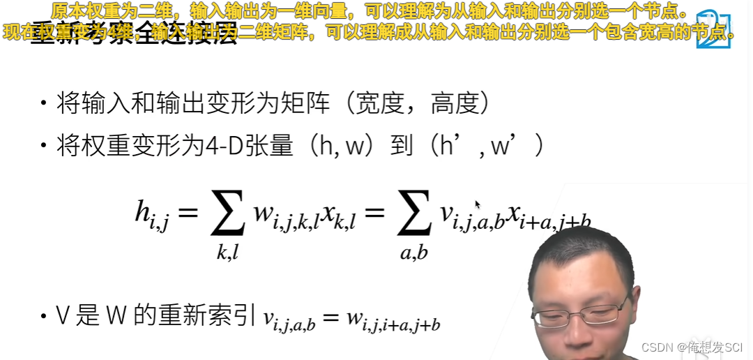for 遍历 i行往后看h行 列 与卷积核做点积 求和