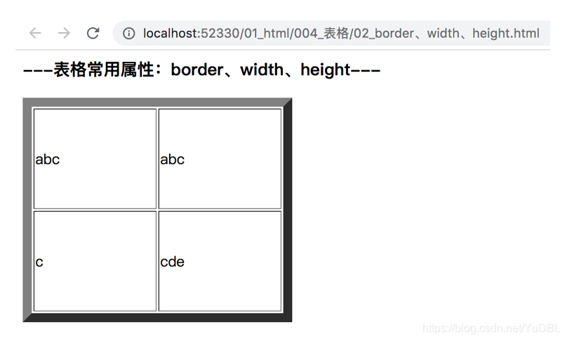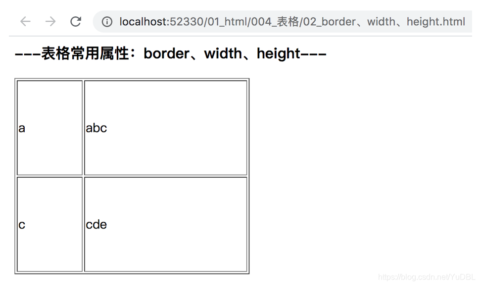 <h3>---表格常用属性:border、width、height---</h3>