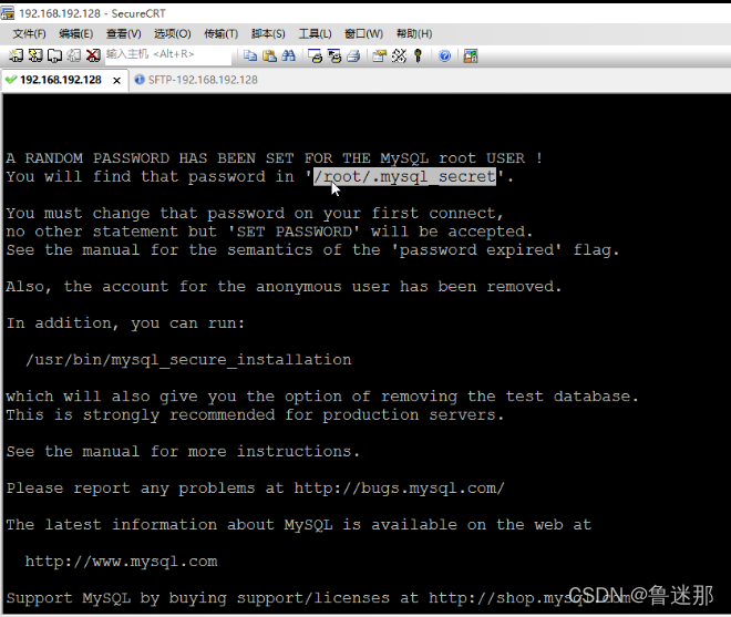 他告诉我们有一个随机的密码已经被生成,为这个Mysql的root用户,并且你能够发现这个password在root下的这个文件当中,如下图: