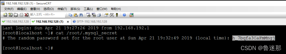 mysql 安装完成之后, 会自动生成一个随机的密码, 并且保存在一个密码文件中 : /root/.mysql_secret