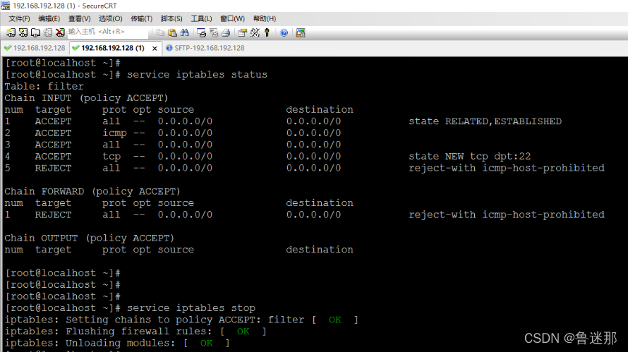service iptables stop 关闭防火墙