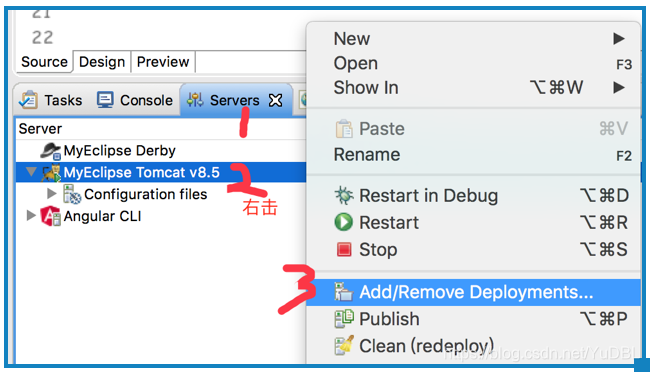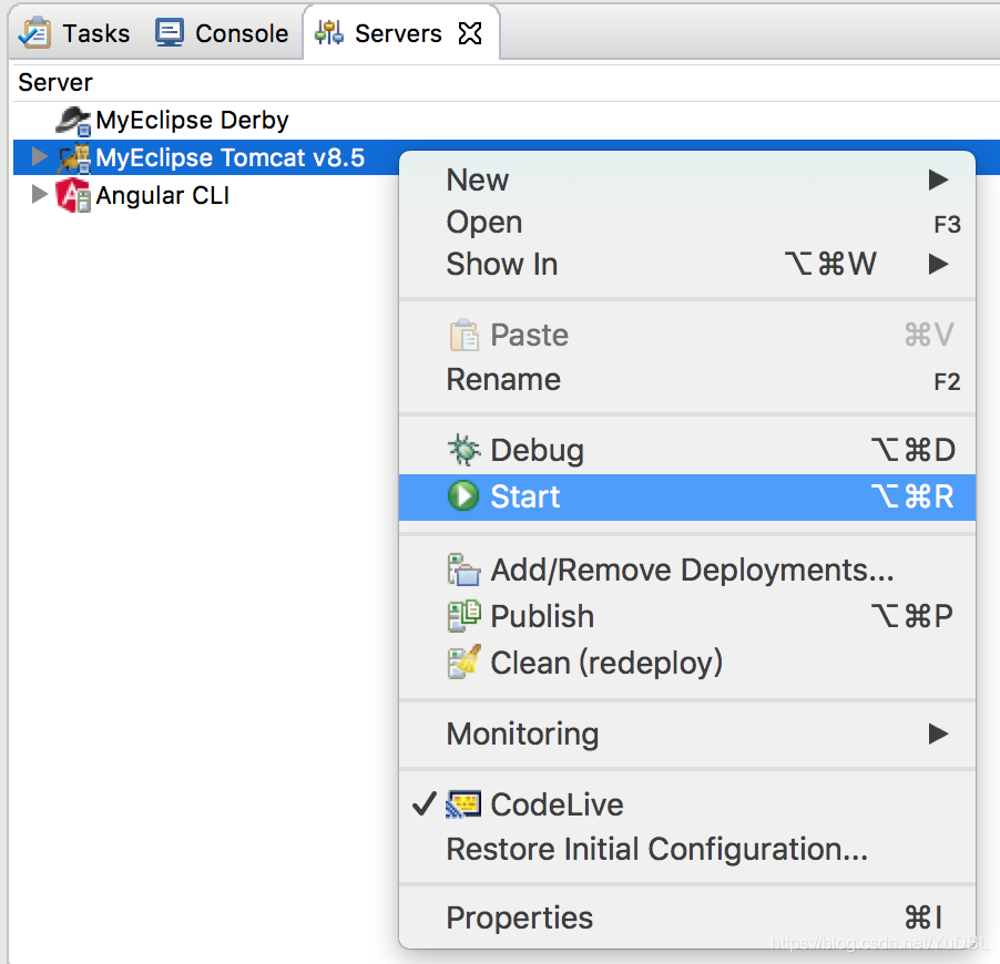 (3)在 myEclipse 打印控制台找到 Servers,启动 tomact 容器