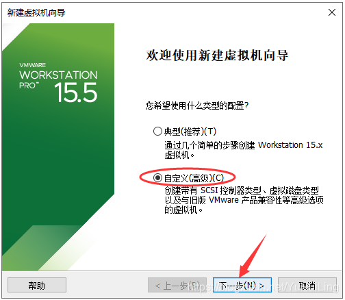 第二步:选中【自定义(高级)(C)】,然后点击【下一步】