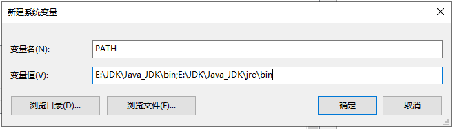 变量值:安装的jdk目录下的bin文件夹的路径;jre路径下bin文件夹的路径