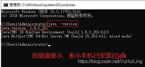 注:如果输入 java –version,出现 “ java不是内部或者外部命令 ” ,说明本机没有安装jdk,需要进行安装