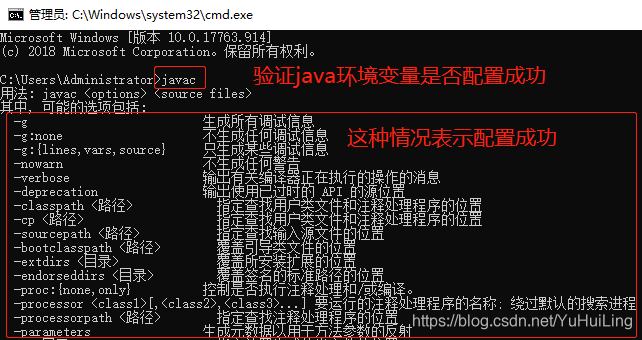 注:如果输入javac后,提示‘javac’不是内部或外部命令,则需要配置环境变量