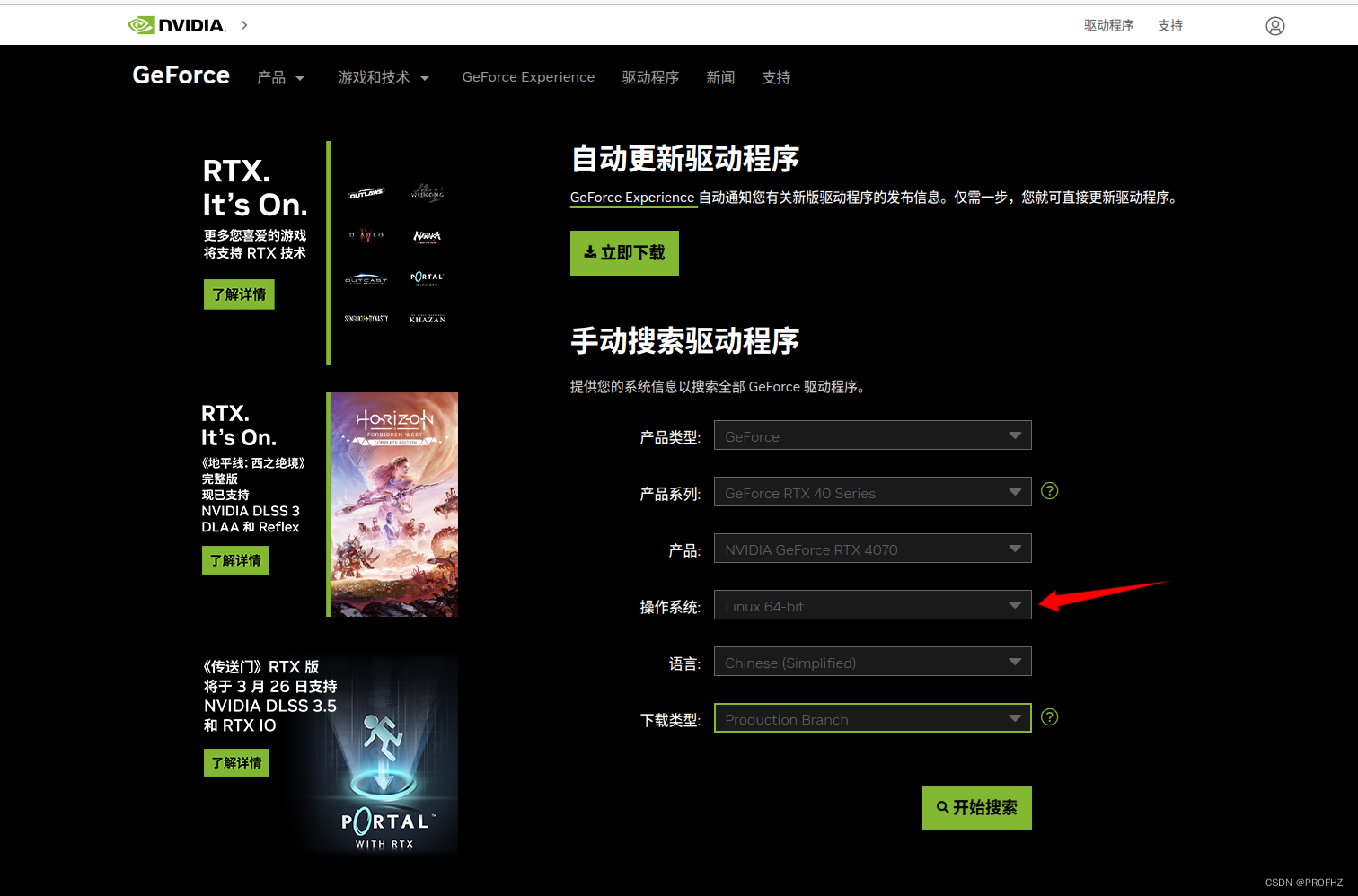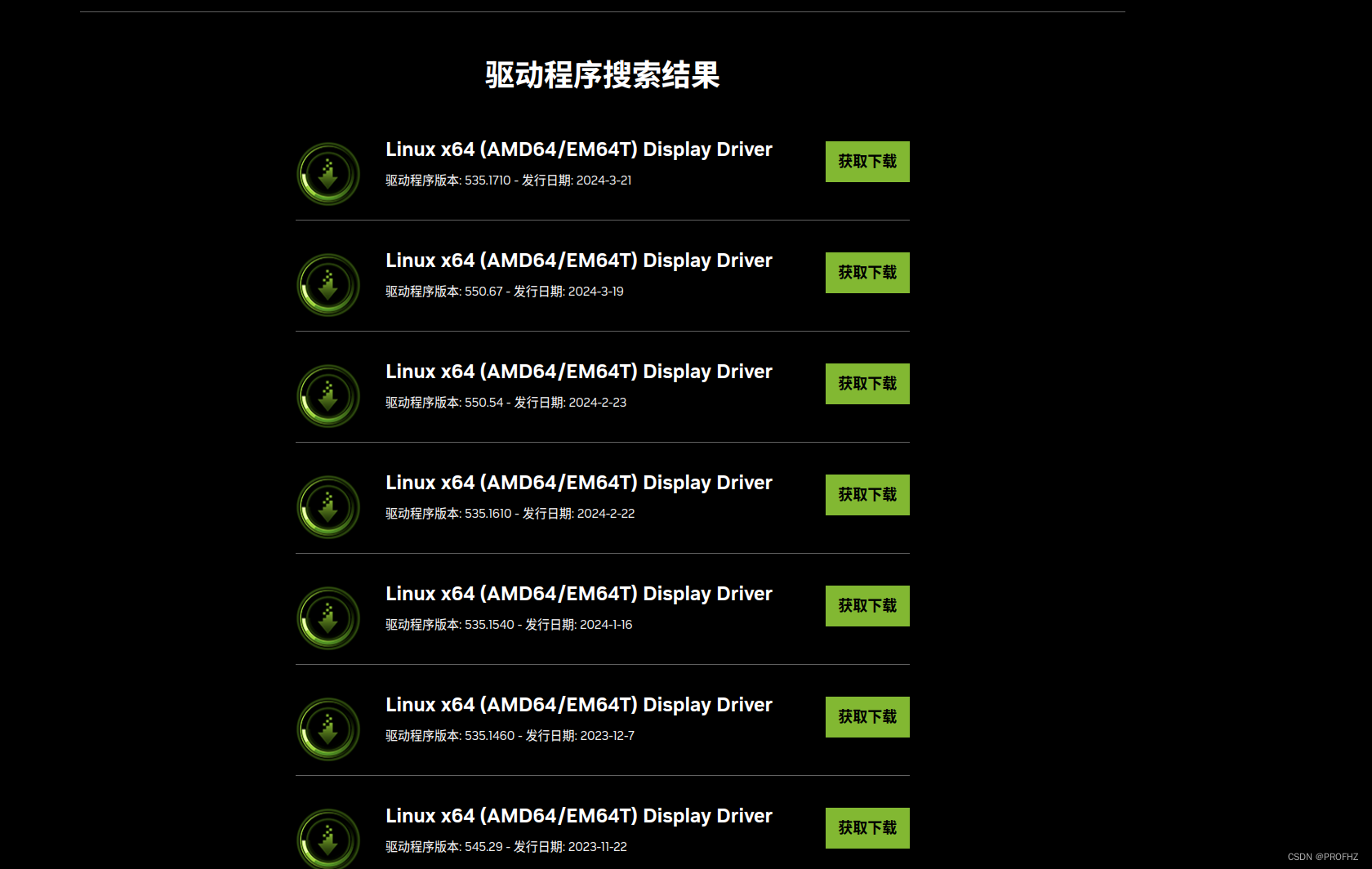 1. 选择自己显卡的型号,注意操作系统选择Linux 64-bit。