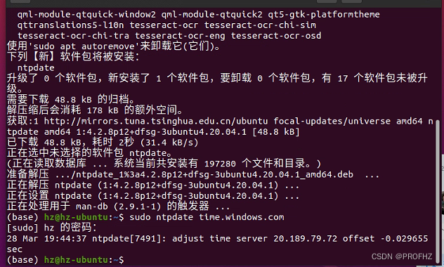 1. Ubuntu系统打开终端(Ctrl+Alt+T),通过以下命令安装ntpdate工具(时间管理工具)