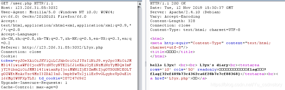 发现了token,我们在源码中得到了const KEY = ‘L3yx----+++±—’,构造L3yx的token,伪造成L3yx登陆,得到flag