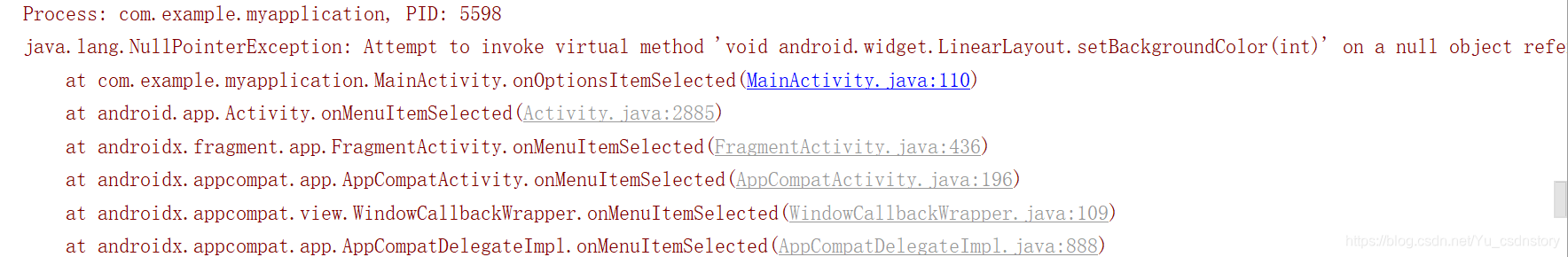 本文记录了在使用Android Studio开发过程中遇到的背景颜色设置错误:'Attempt to invoke virtual method'void android.widget.LinearLayout.setBackgroundColor(int)' on a null object reference'。通过检查布局变量并指定LinearLayout的页面ID,解决了该问题,避免了应用闪退。