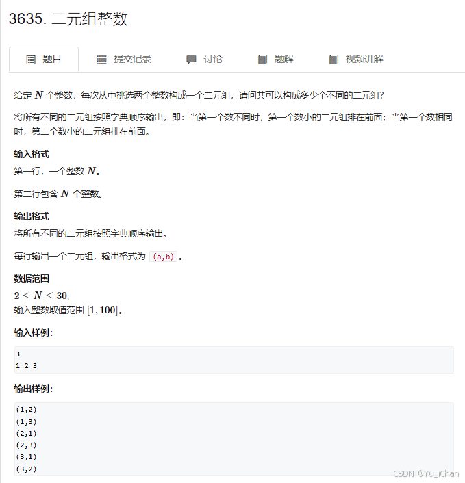 本质就是选两个数,但是要按照字典序输出,也不能要相同的二元组,所以我们想到了排序+去重