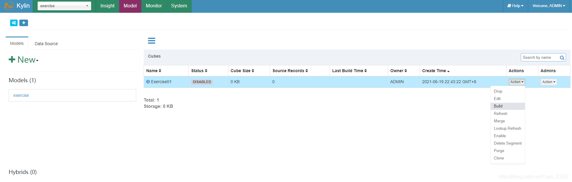 初始用户名为:admin,密码为:KYLIN