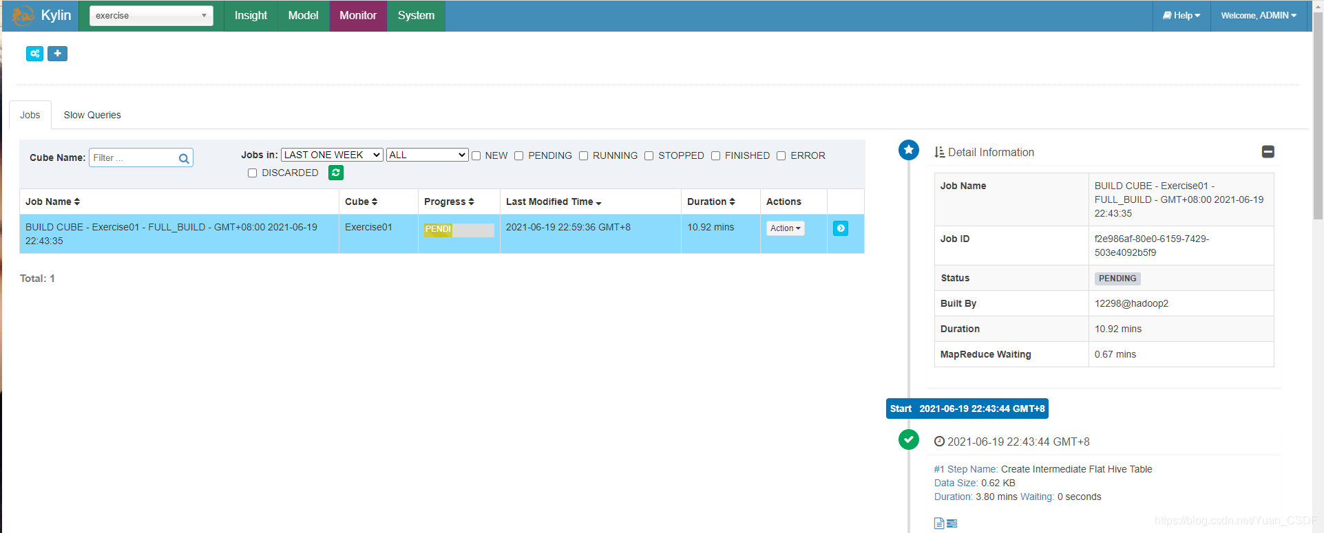 选择Build即刻建模,可以在Monitor页面中查看任务运行情况