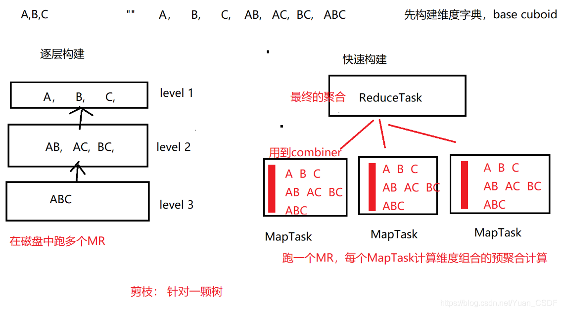 每一轮的计算都是一个MapReduce任务,且串行执行;一个N维的Cube,至少需要N次MapReduceJob。