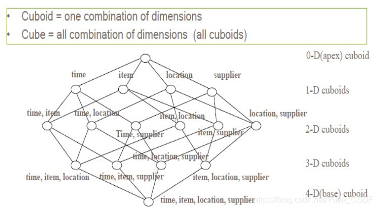 - 计算和统计所有的维度组合,并保存,其中,每一种维度组合,称为一个Cuboid。