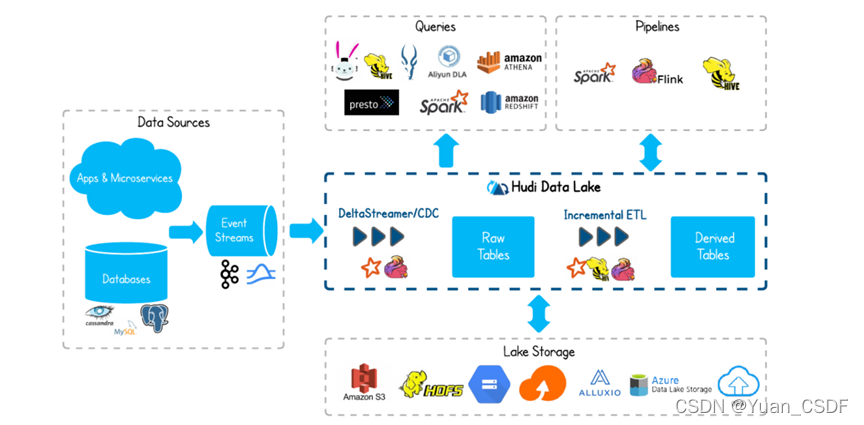 Apache Hudi可以轻松地在任何云存储平台上使用。Hudi的高级性能优化,使分析工作负载更快的任何流行的查询引擎,包括Apache Spark、Flink、Presto、Trino、Hive等。