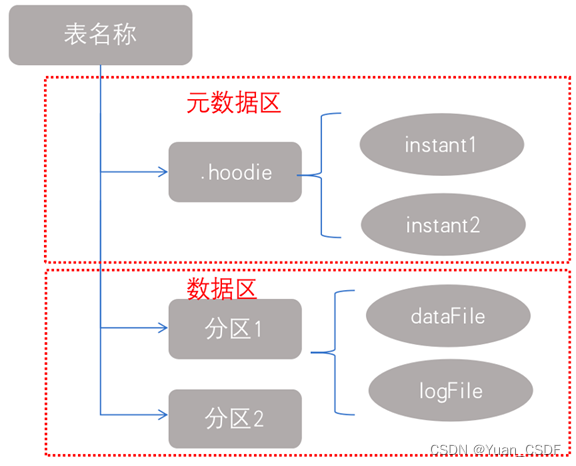 - 1、元数据:.hoodie目录对应着表的元数据信息,包括表的版本管理(Timeline)、归档目录(存放过时的instant也就是版本),一个instant记录了一次提交(commit)的行为、时间戳和状态,Hudi以时间轴的形式维护了在数据集上执行的所有操作的元数据;