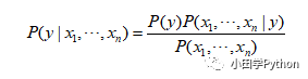 显然这样无法计算了,而且,当特征较多时,其组合形式会特别多。因此,出现了朴素贝叶斯,对特征值进行独立性假设。这样每个特征值对结果的影响互不相关,则有下面两个等价公式。