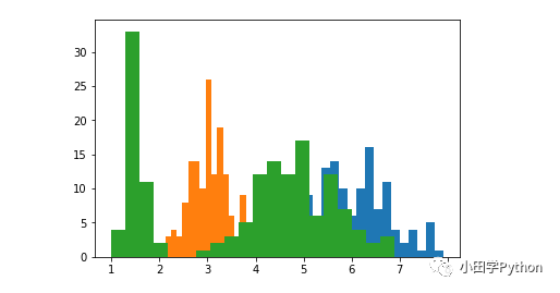 这部分使用的sklearn自带的数据集——鸢尾花。数据包含三种鸢尾花的四个特征,分别是花萼长度(cm)、花萼宽度(cm)、花瓣长度(cm)、花瓣宽度(cm)。