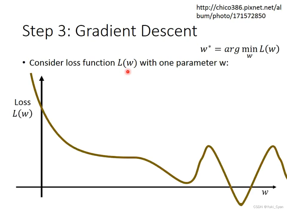 Loss是以前面提到的两个未知参数为参数的一个函数: