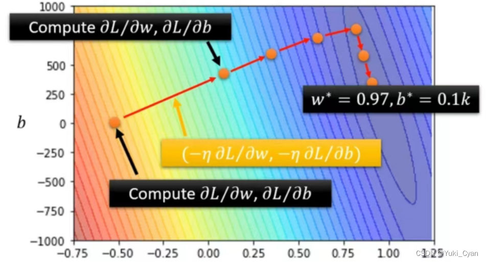 —> 分别求损失L对 的偏导数,然后再乘以学习率
