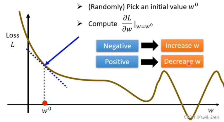 第一步:随机选取一个点 , 计算该点的微分,得到该点斜率;