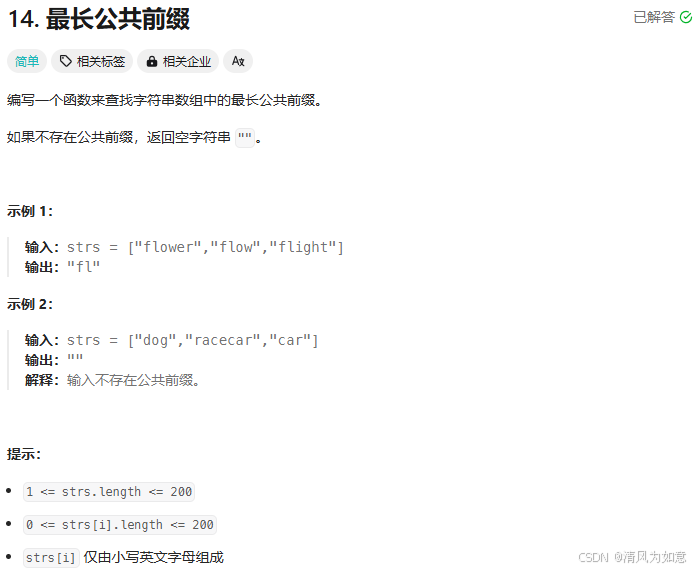 // 每个字符串的通同位相等时,更新最长公共前缀