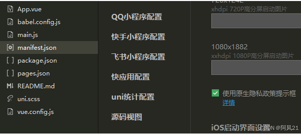 1、在manifest.json勾选使用原生隐私政策提示框