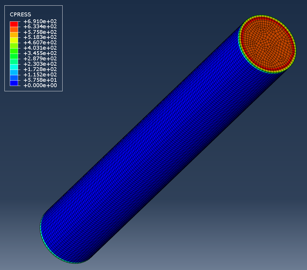 - 接触压力: 观察压头/柱体以及柱体/外模具接触面上的压力分布。