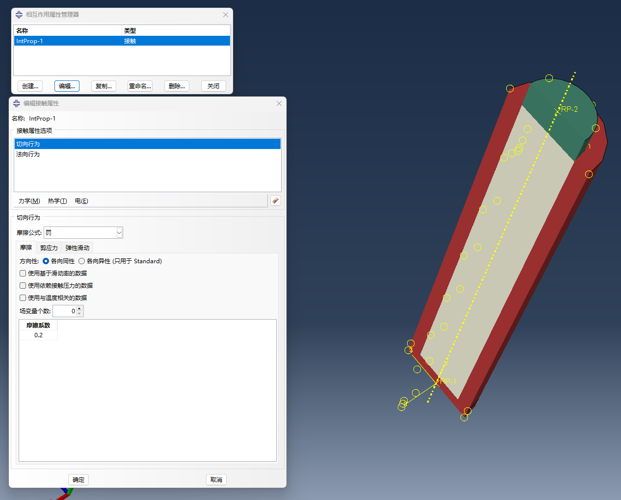 摩擦。模具钢间的摩擦系数需根据实际情况或文献设定(这里我们给0.2),使用罚函数。