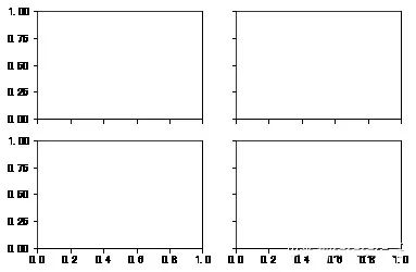 fig , axes = plt.subplots(2,2,sharex=True,sharey=True)