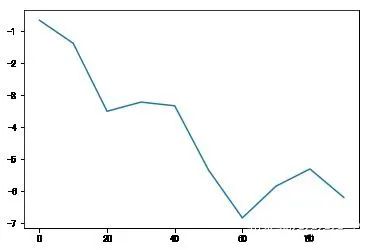 s = pd.Series(np.random.randn(10).cumsum(),index=np.arange(0,100,10))